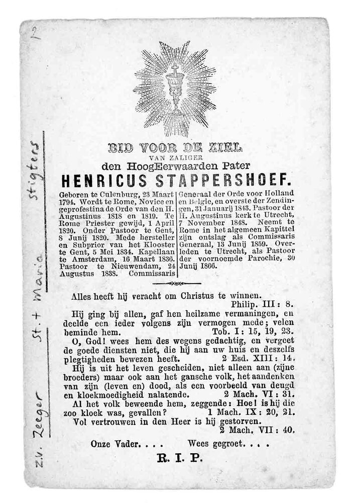 bidprent voor pater Henricus Stappershoef. Geboren 2...