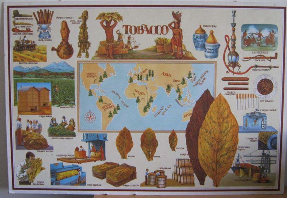 Affiche met uitleg over de herkomst van de tabak van...