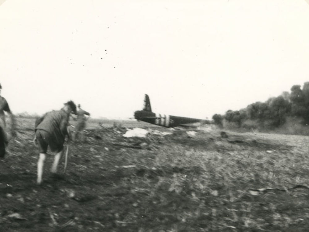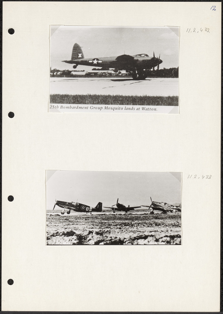 Foto landende Amerikaanse Mosquito. Tekst: "25th Bom...