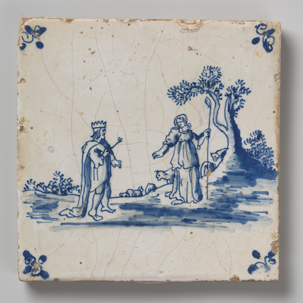 tegel van aardewerk met tinglazuur, voorstellende: h...