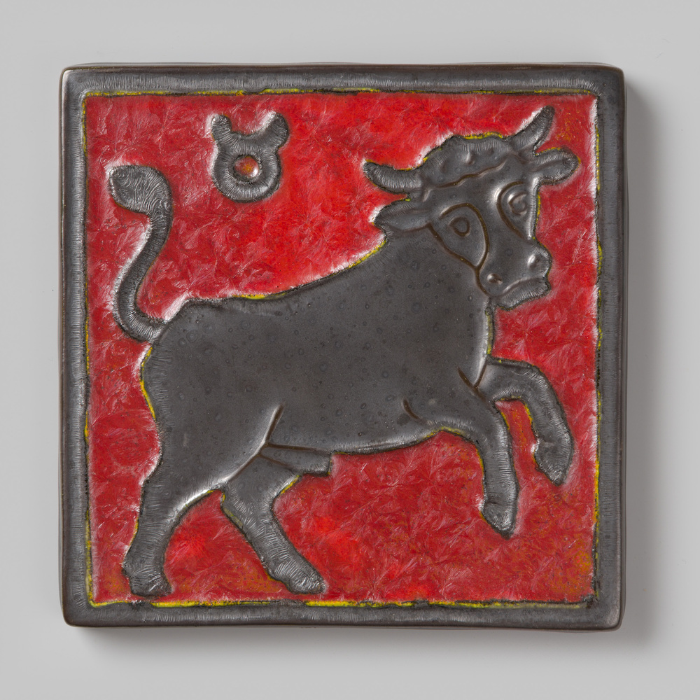 Tegel van keramiek in cloisonné-techniek, met portre...