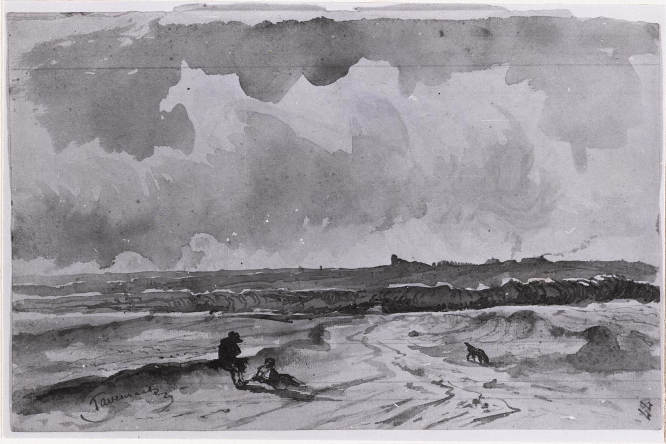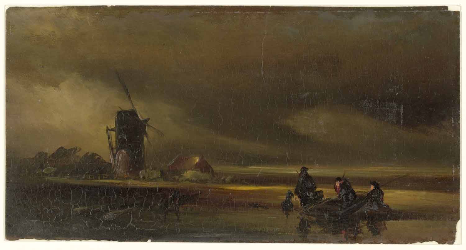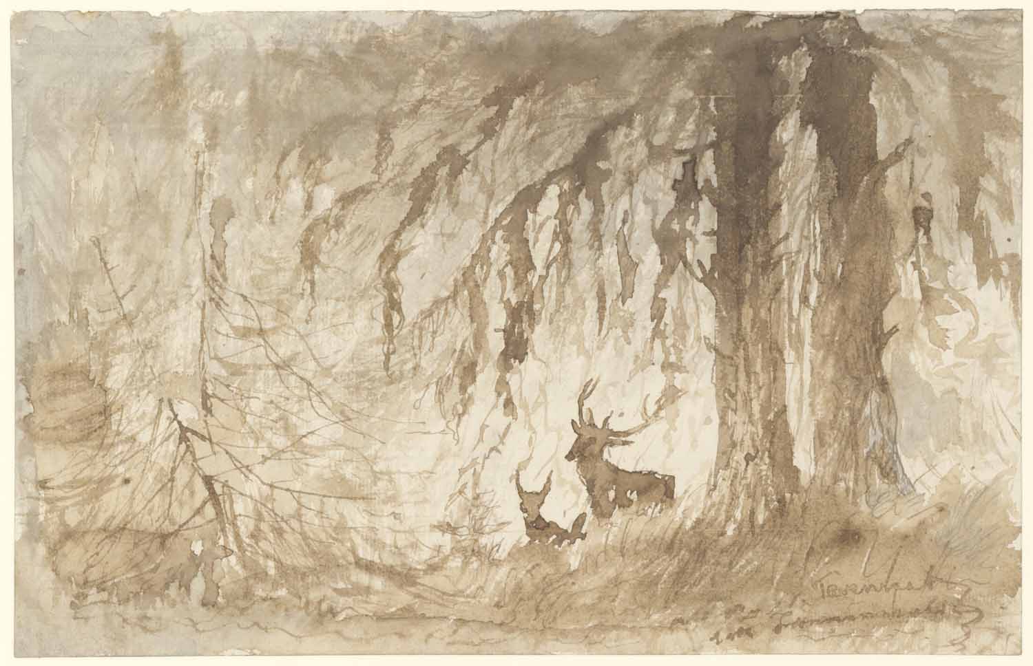 Landschap met twee mannen en een hond. Herte-bok (Ve...
