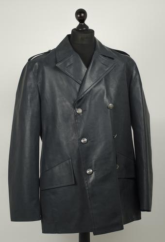 Kunstleren donkergroengrijze regenjas, circa 1977