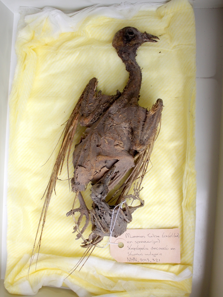 Mummies Turkse tortel(adult) en spreeuw (juv)