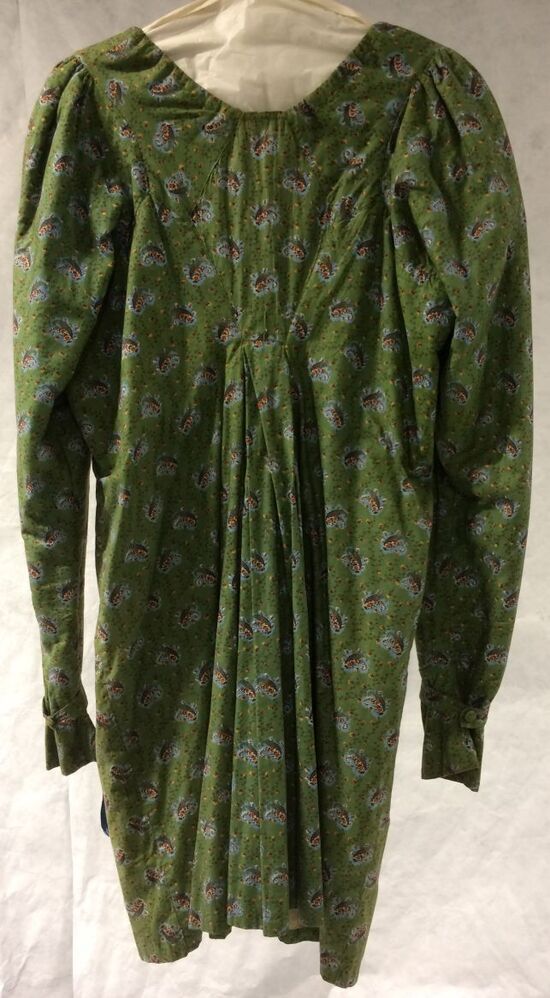 Kostuumjak zeer lange mouwen van groen katoen bedruk...