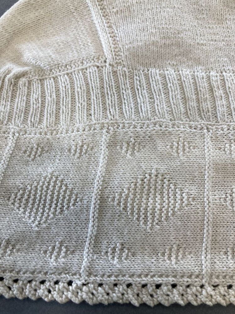 tipmutsstrook van wit gehaakt katoen, met rijen hartjes