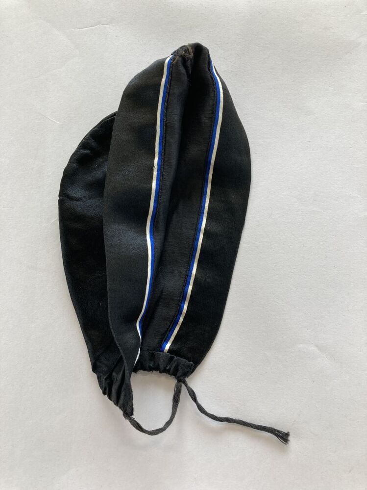 Petje van donkerblauw laken met zilver galon biezen ...
