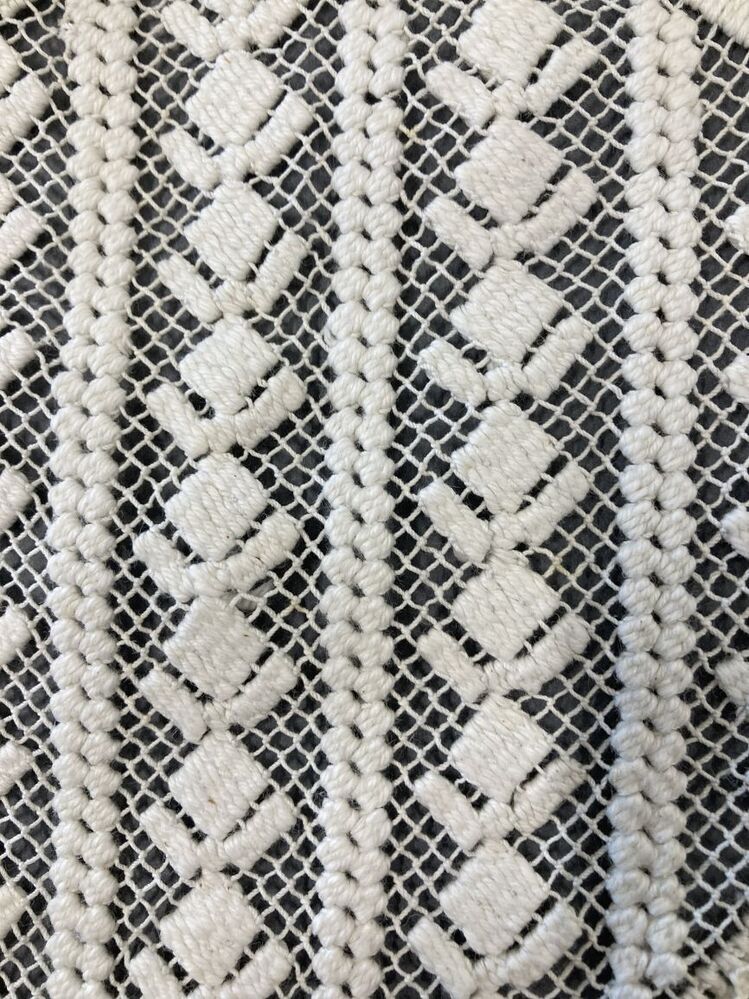 Wit katoenen kleedje, filetknoopwerk, in het midden ...