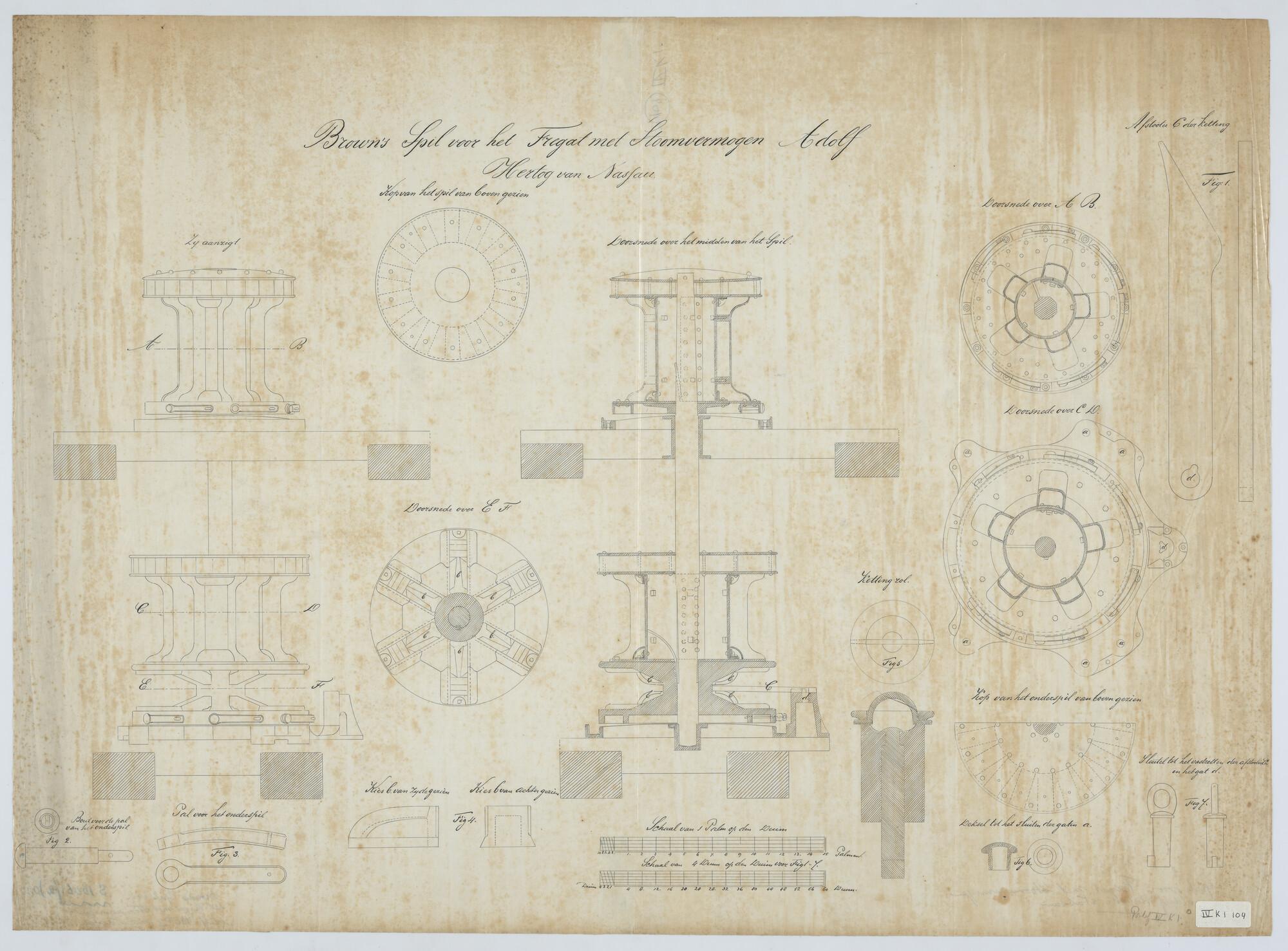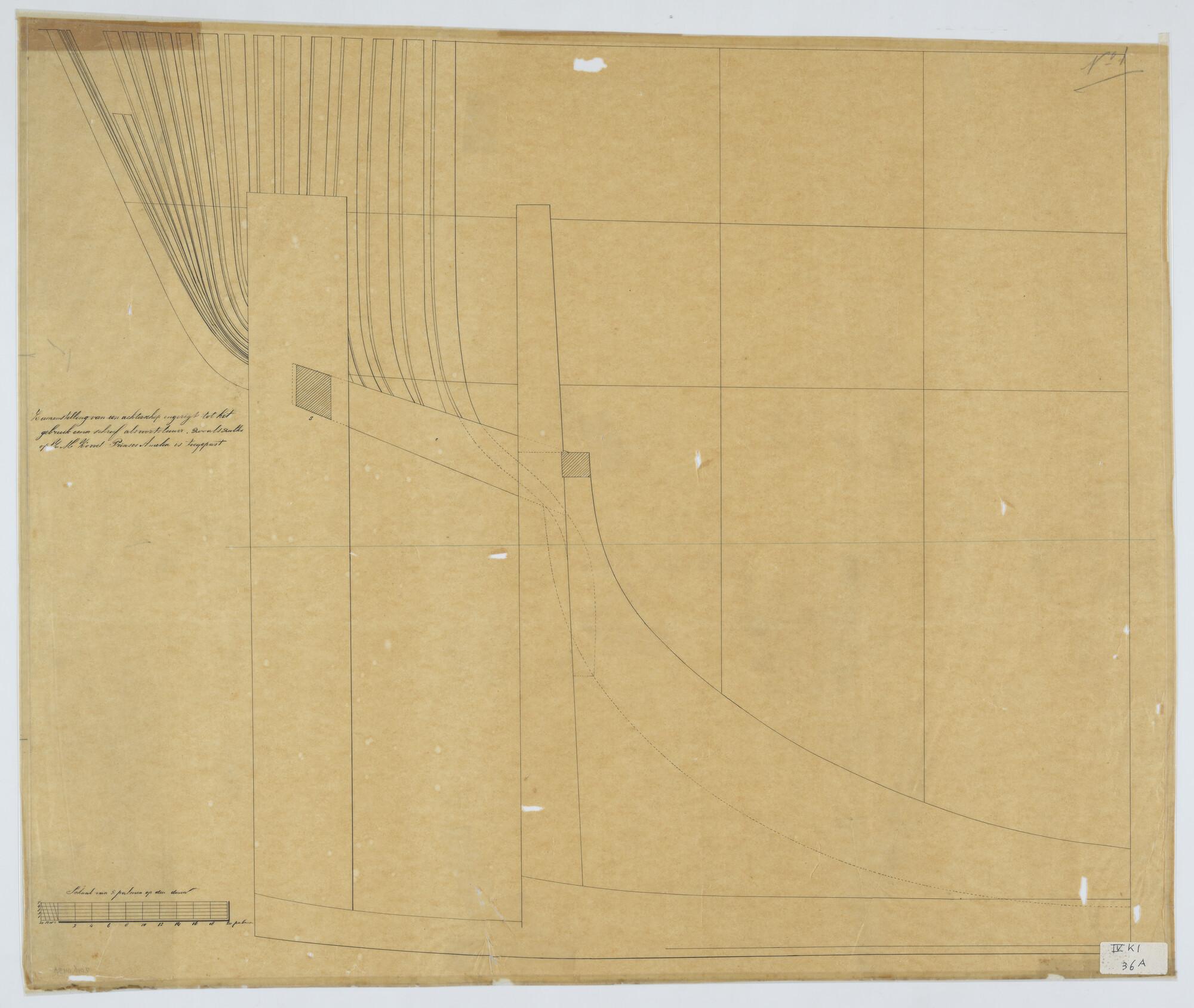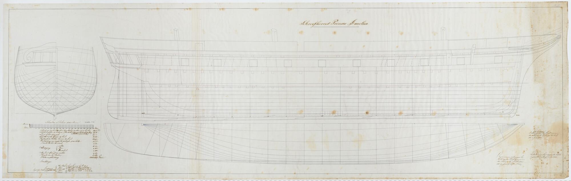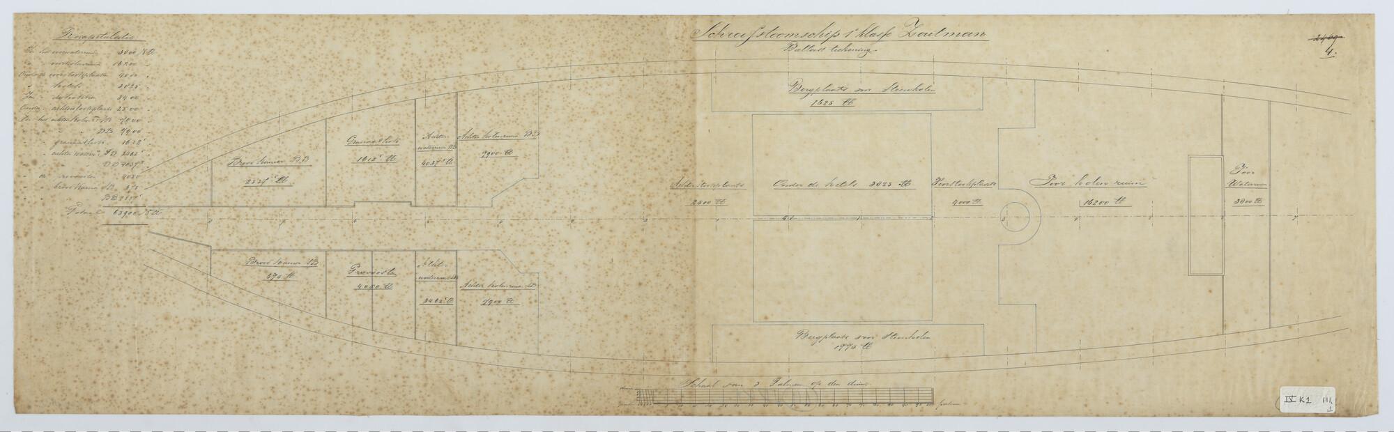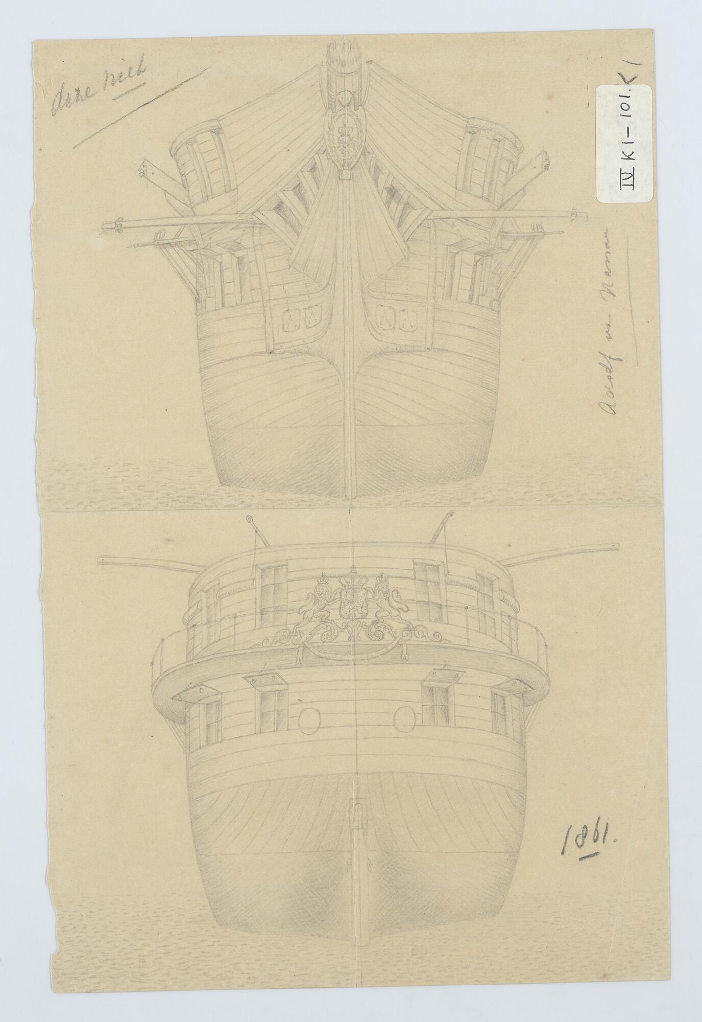 'Verdedigingsvaartuig, 1883'. zijanzicht, bovenaanzicht