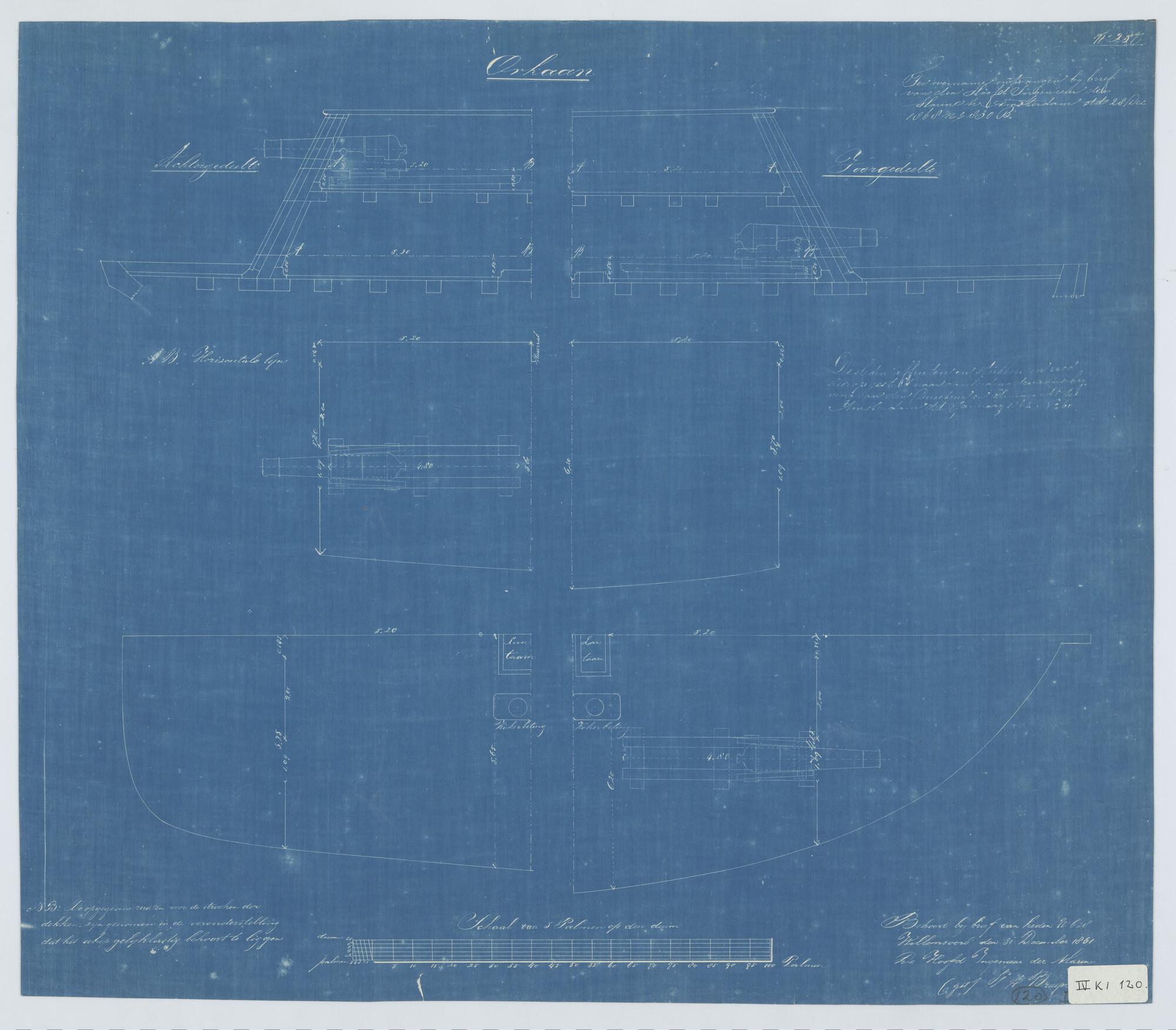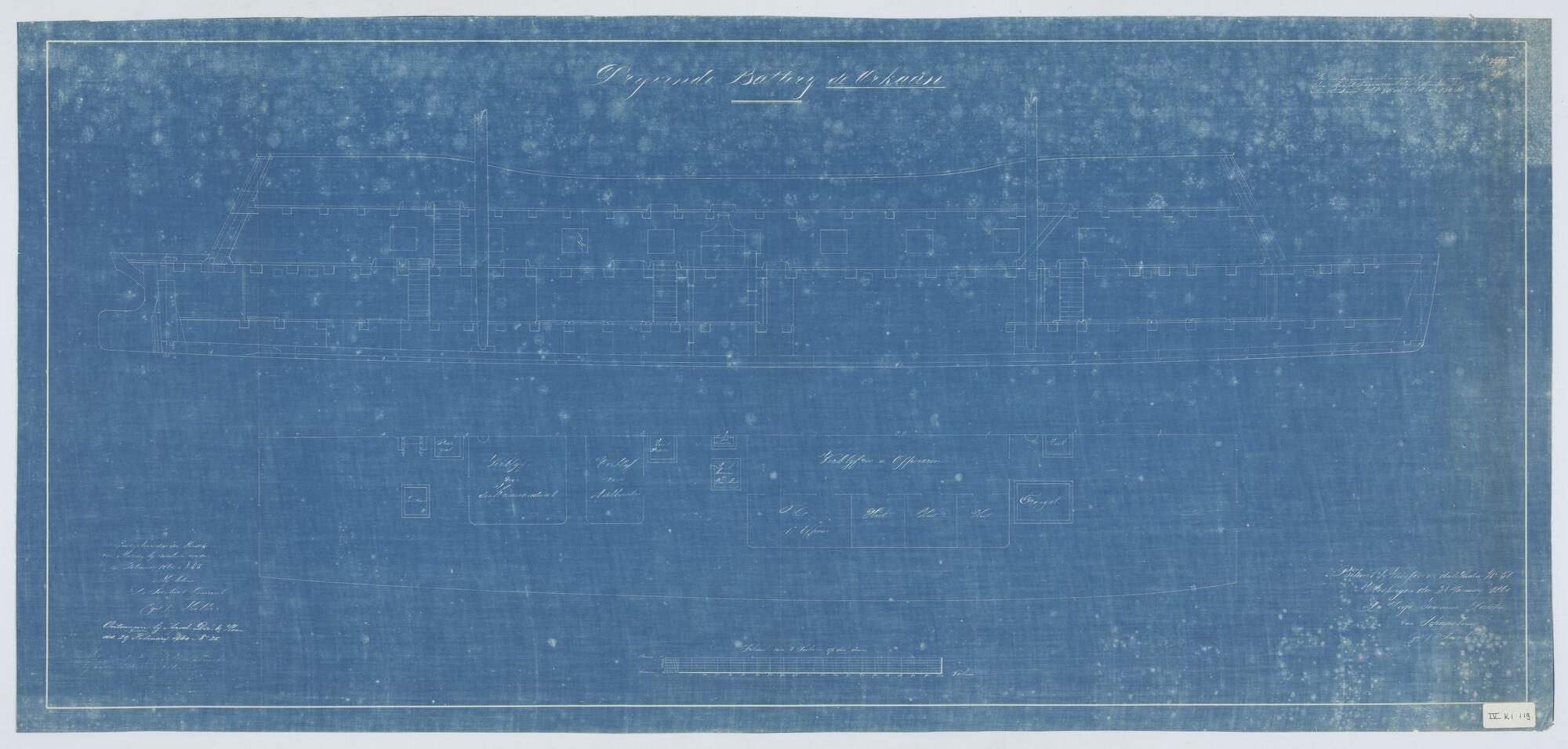 De drijvende batterij 'Orkaan', 1859. zijaanzicht, d...