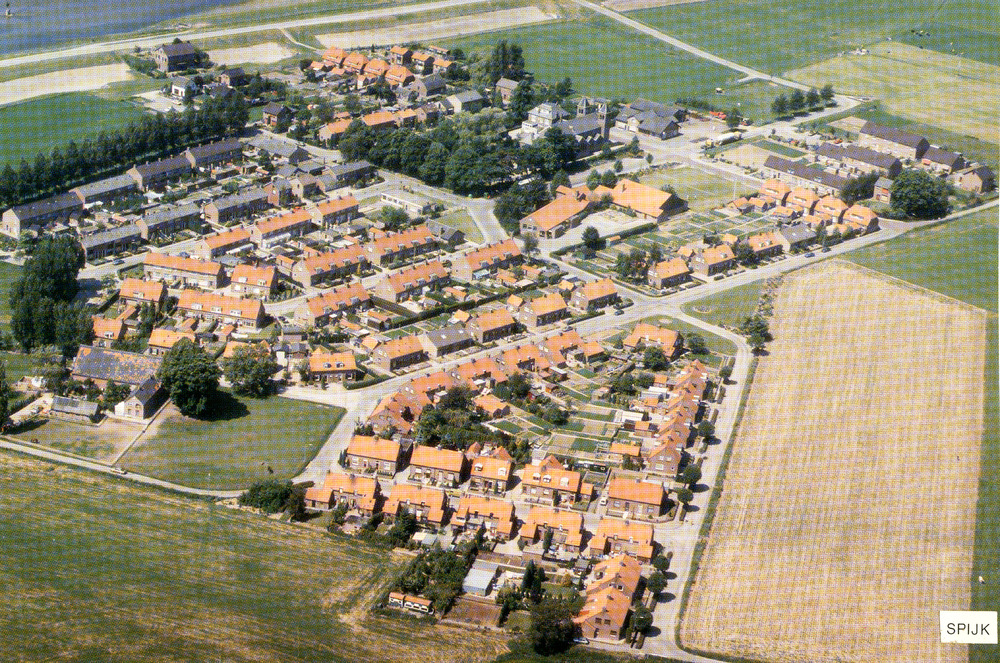 Ansichtkaart met een luchtfoto van Spijk