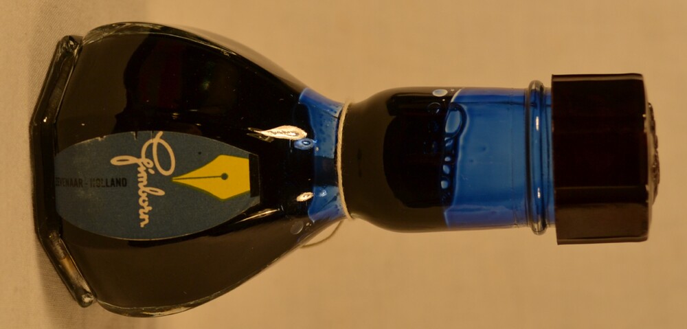 Inktflesje van glas gevuld met normaal vulpeninkt do...