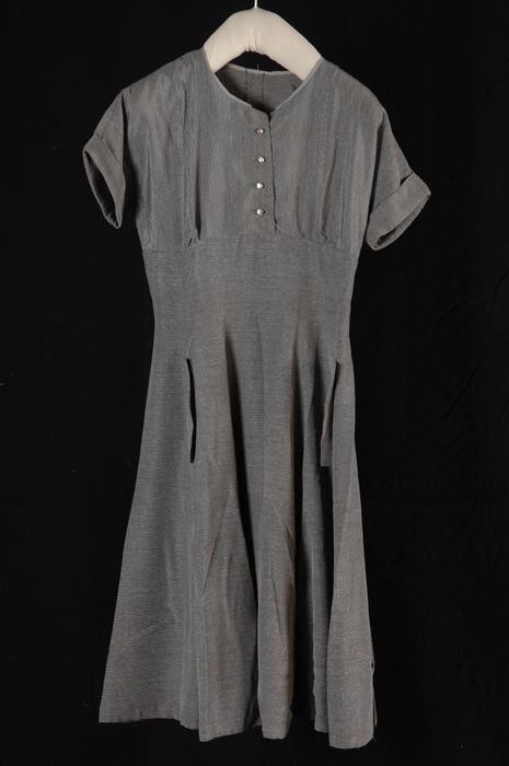Getailleerde jurk van donkergrijs en lichtgrijs gest...