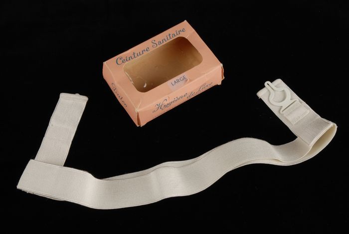 Maandverbandgordel (1), brede elastieke band met voo...