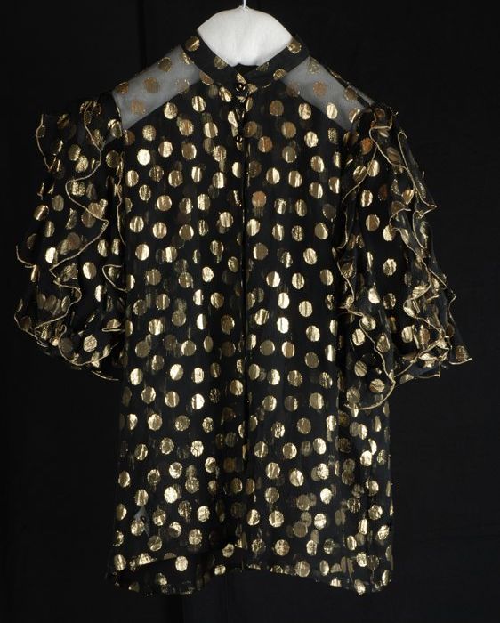 Blouse van zwart zijde organza met dessin van ingewe...