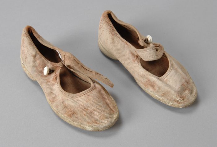 Kinderschoenen, klein formaat van wit canvas met crè...