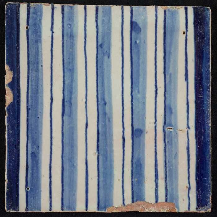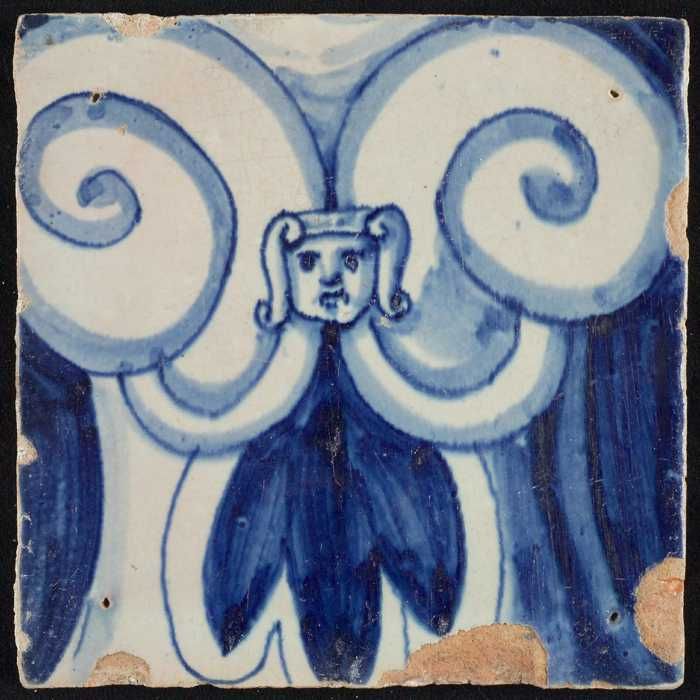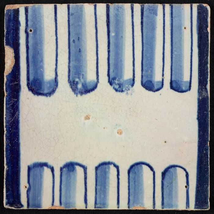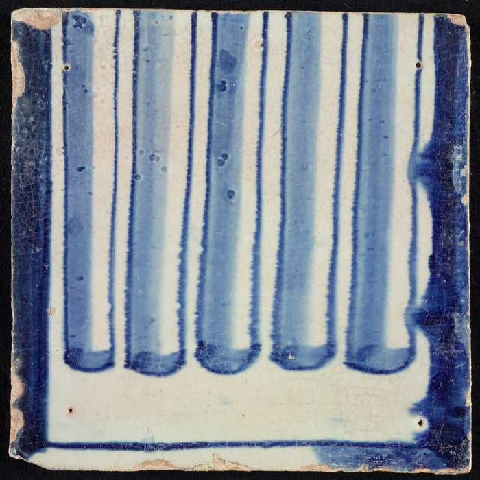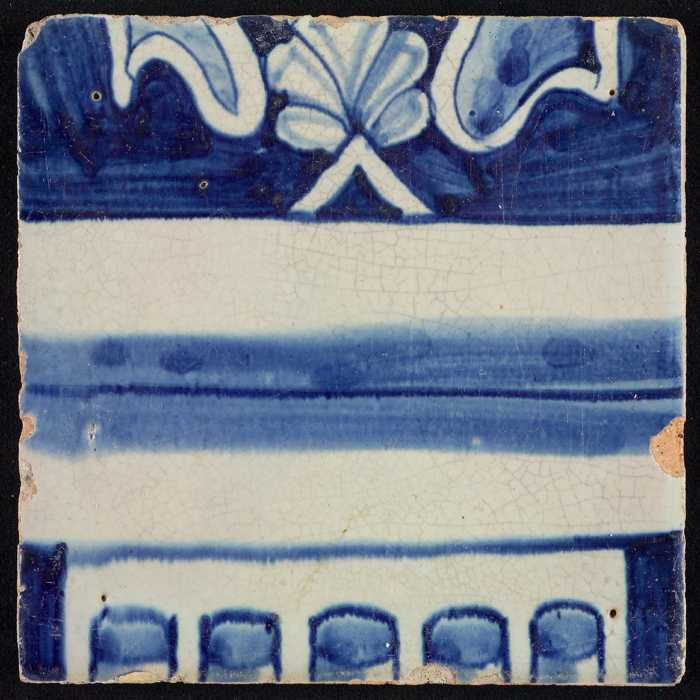 Tegel van pilaster, blauw op wit, deel van zuil met ...