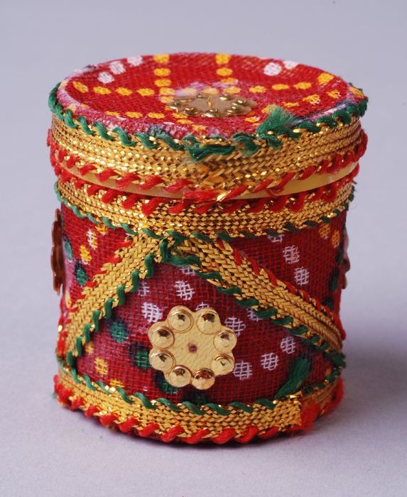Ovale bus gekleurd poeder, behorende bij het Hindoeï...
