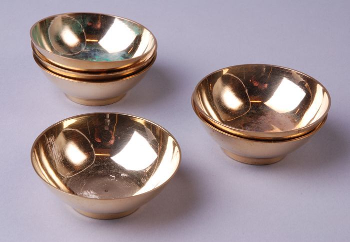 Zes kleine koperen bakken, behoren bij Hindoeïstisch...