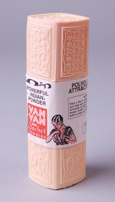 Ovale bus geel gekleurd poeder, behorend bij het Hin...