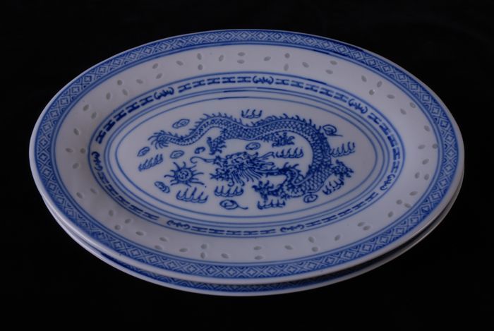 Kunststof schotel met bloemdecor op de vlag