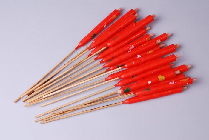 Blikken bus met kleurstof in gekleurd papier, behore...