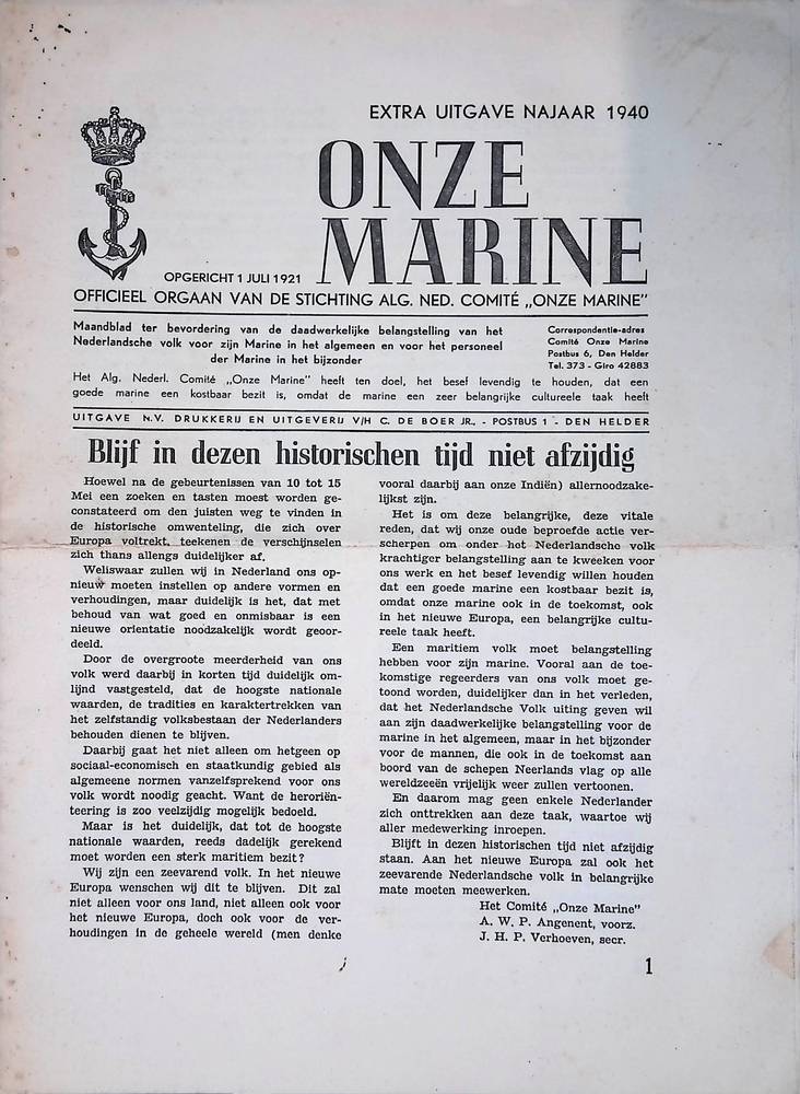 Onze Marine, extra uitgave najaar 1940