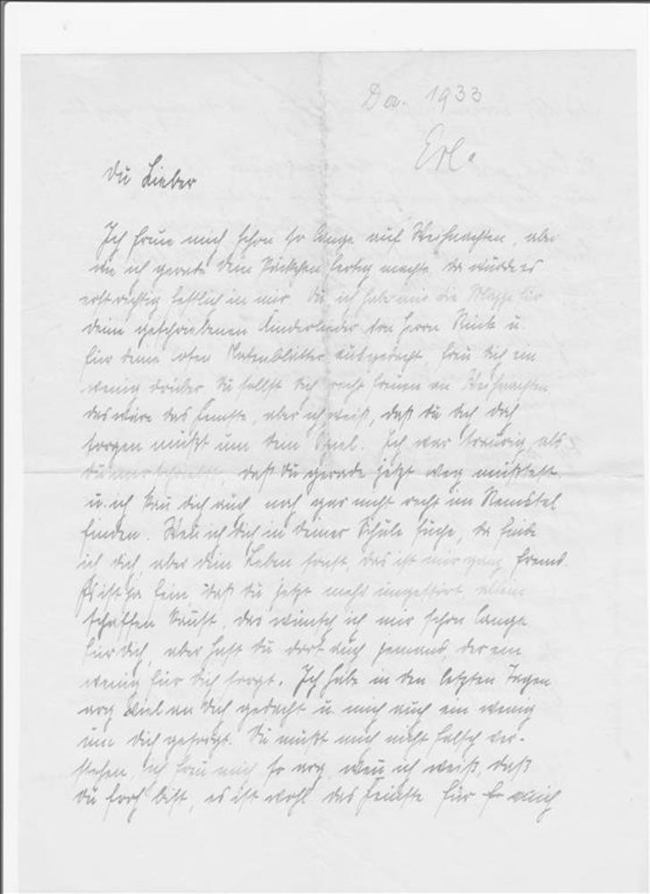 Brief van Ella aan Hubert, geschreven in december 1933