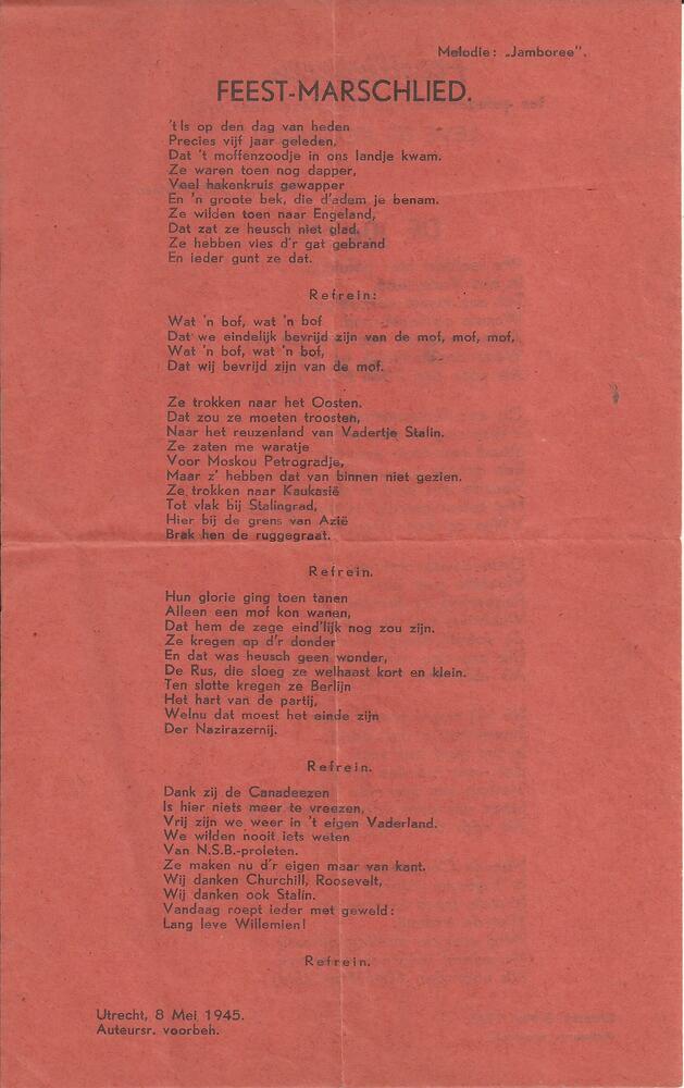 Feestliederen ter gelegenheid van Nederland weer vri...