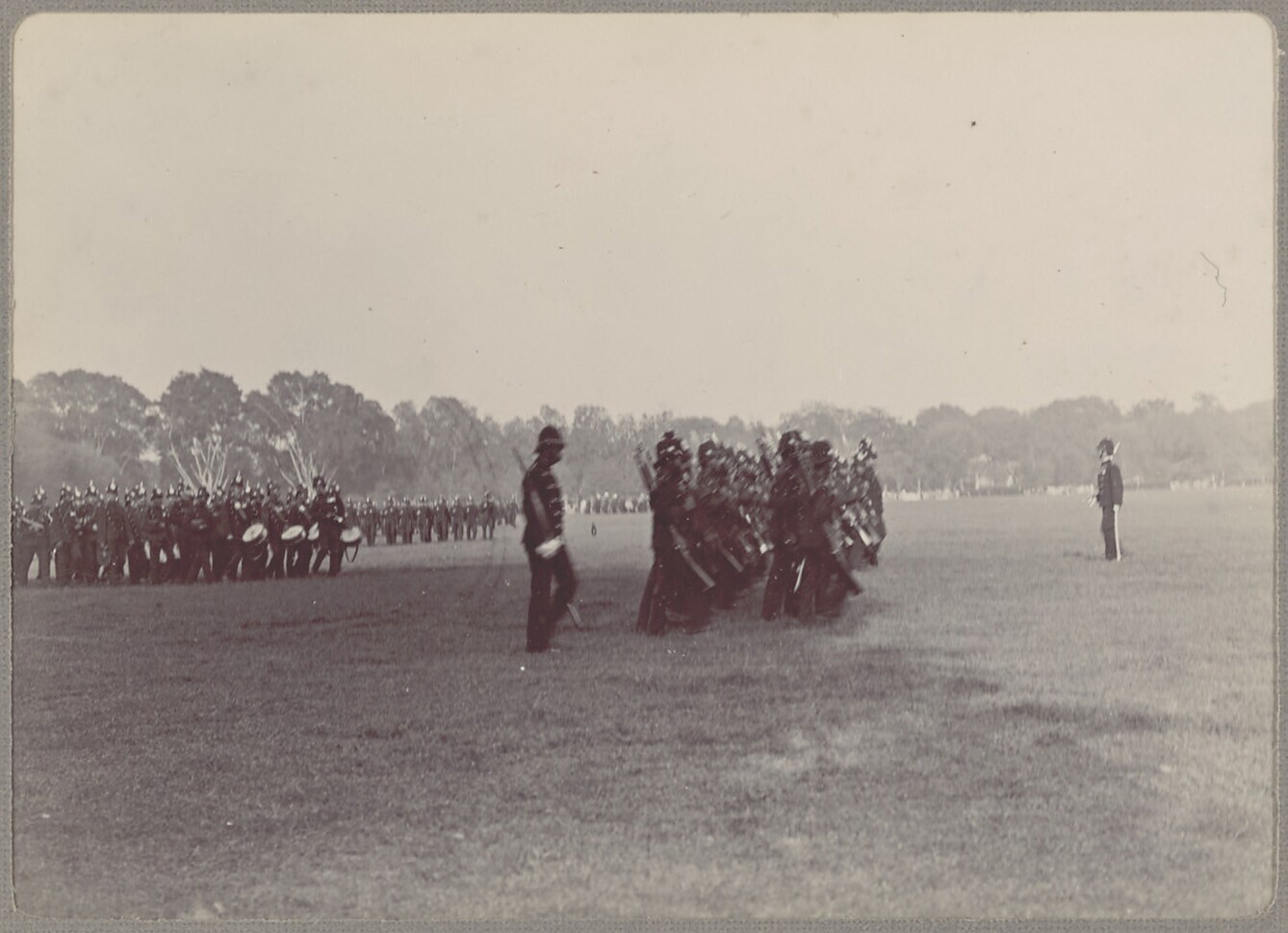 Aangetreden militaire eenheden en een marcherend muz...