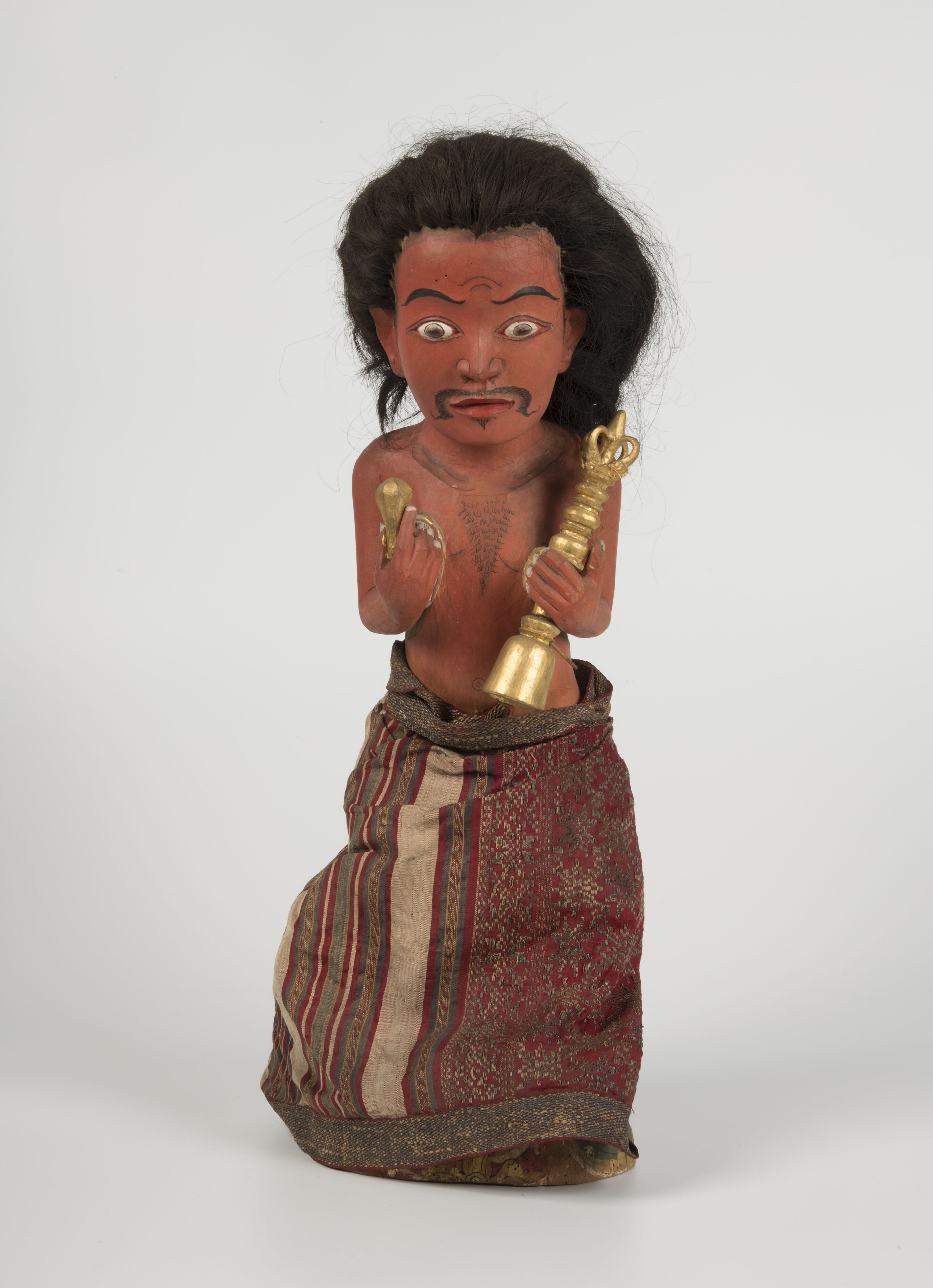 Een houten beeld van een man