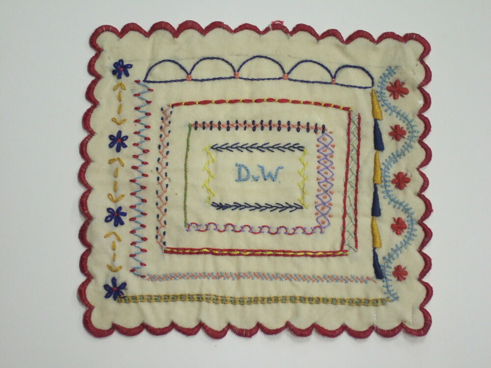 stekenborduur kleed van wollen mousseline vervaardig...
