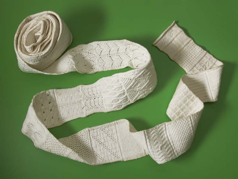 Paar mouwtjes van wit katoen, dik, filet geknoopt