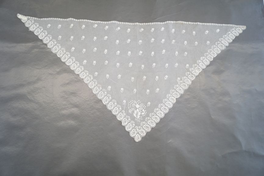 Fichu van wit neteldoek met kleine golfrand en op de...