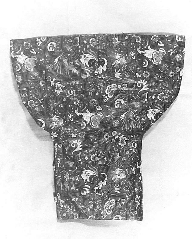 Sitsen kindermouwtjes, afgezet met geel-groen zijden...