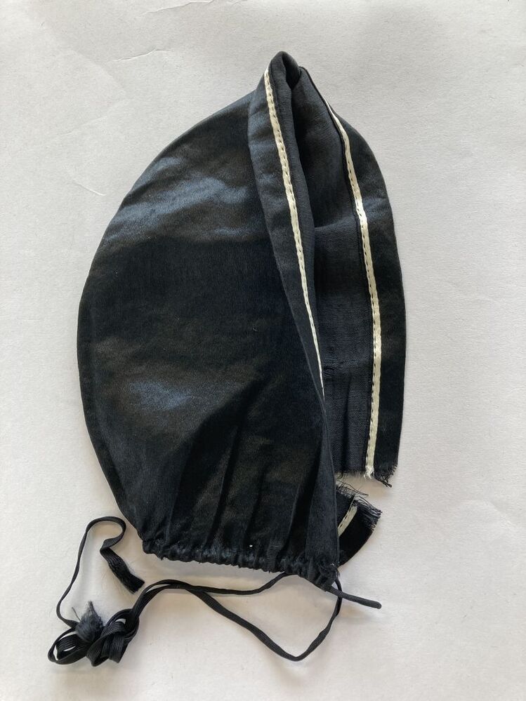 Zwarte ondermuts van zijde, satijnbinding,gedragen b...