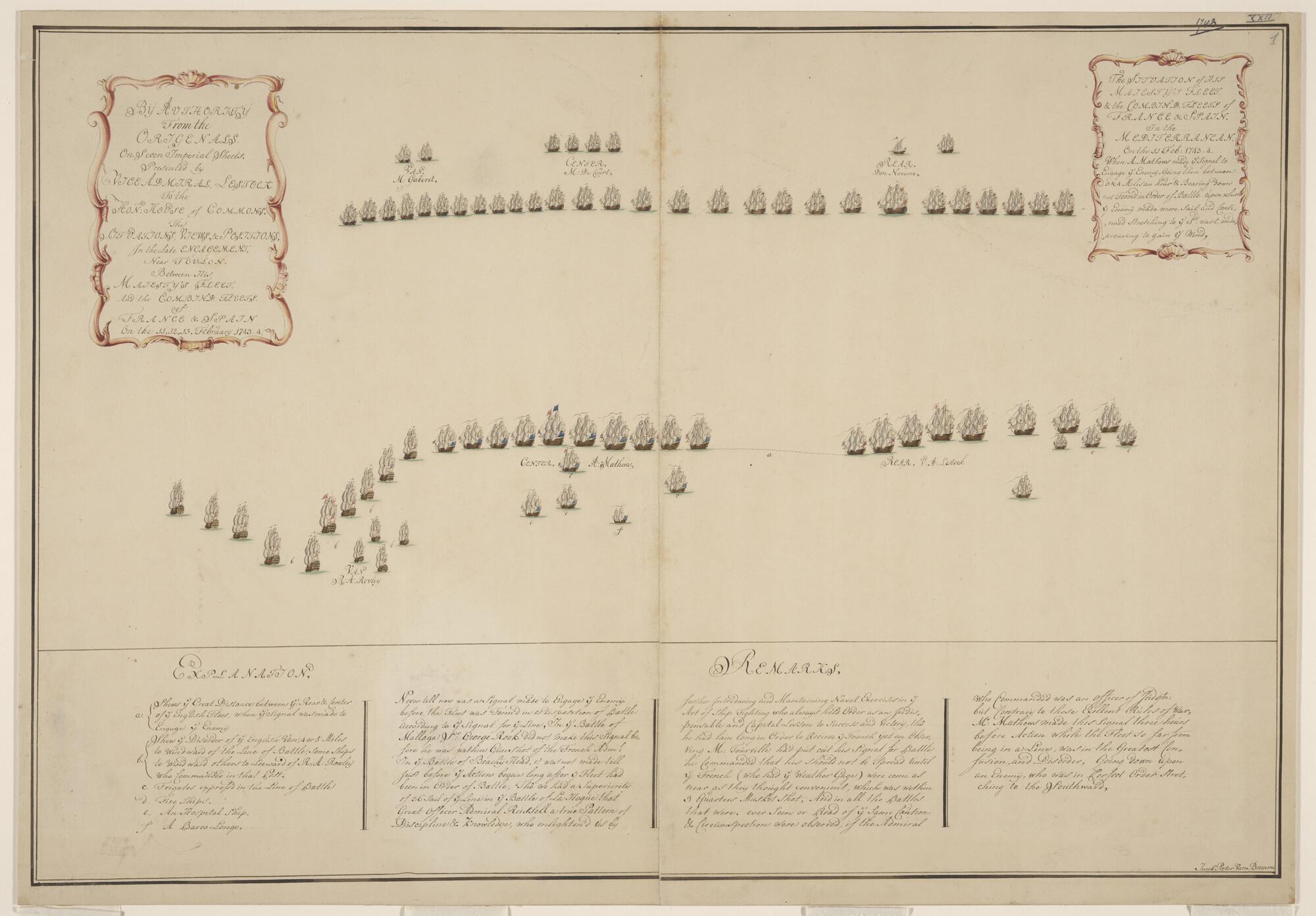 Lijnenplan en lijst met kanonverdeling van een schip...