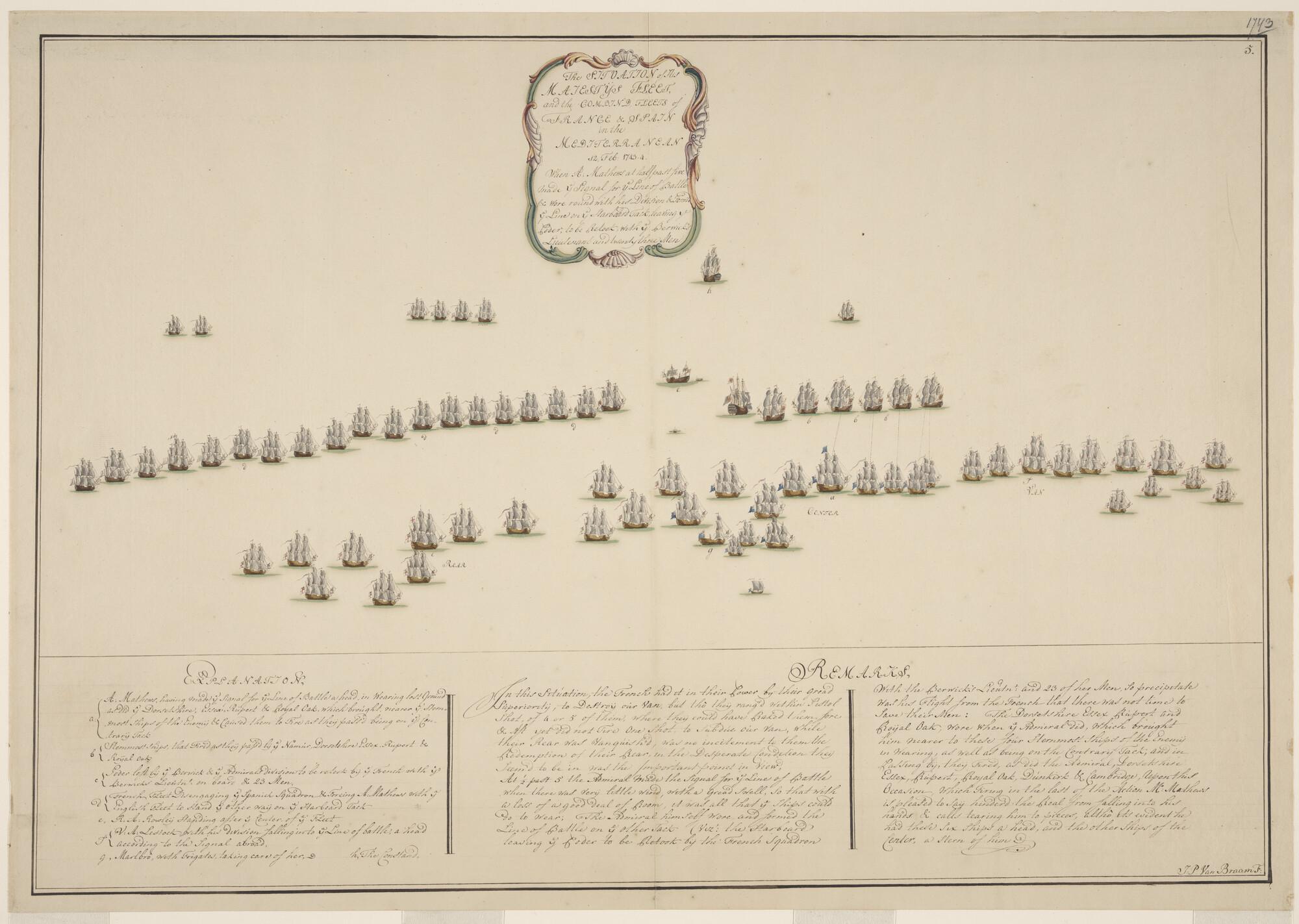 Tekening van de zeeslag tussen de Engelse vloot en d...