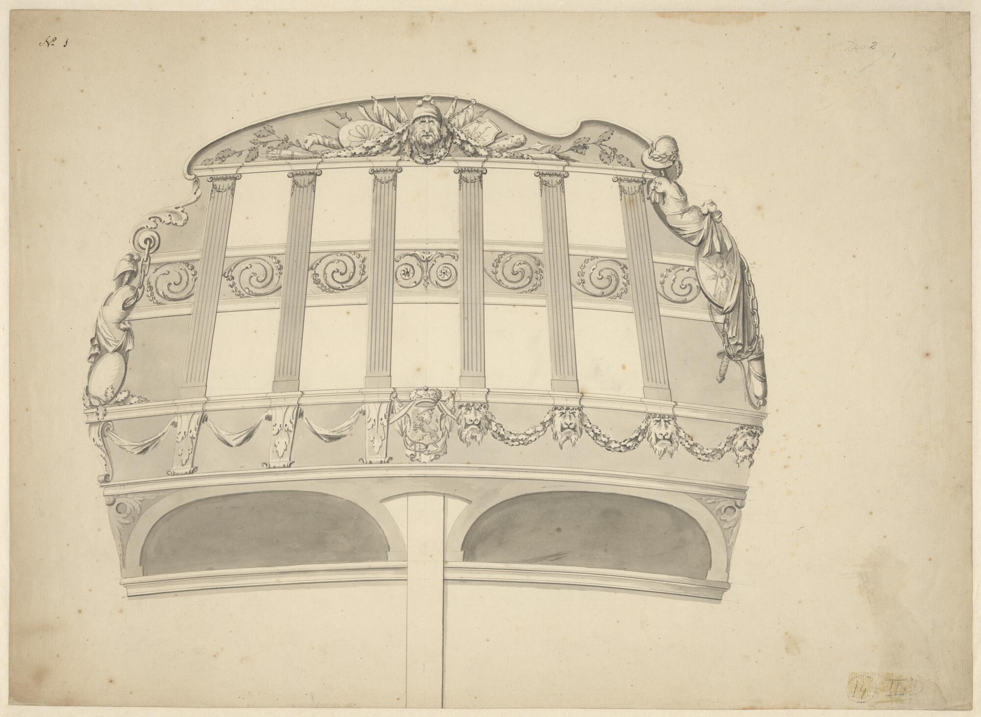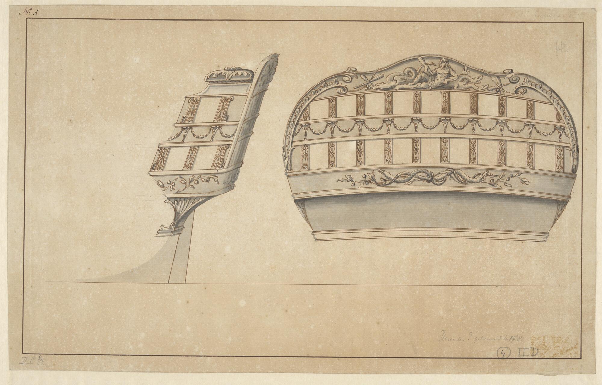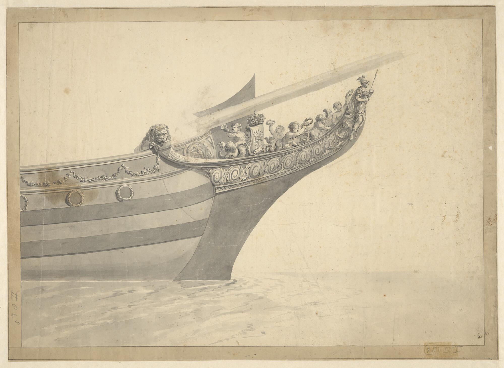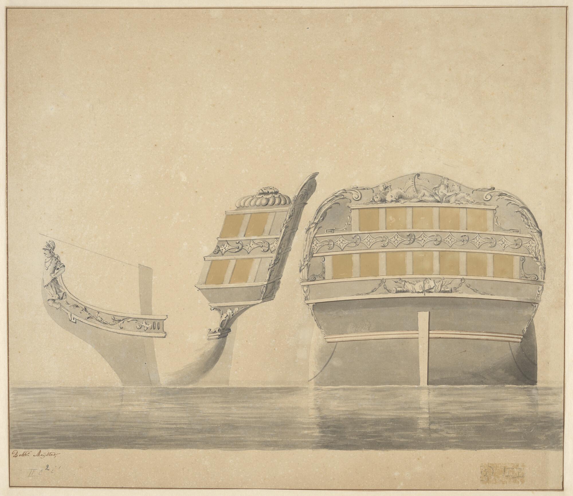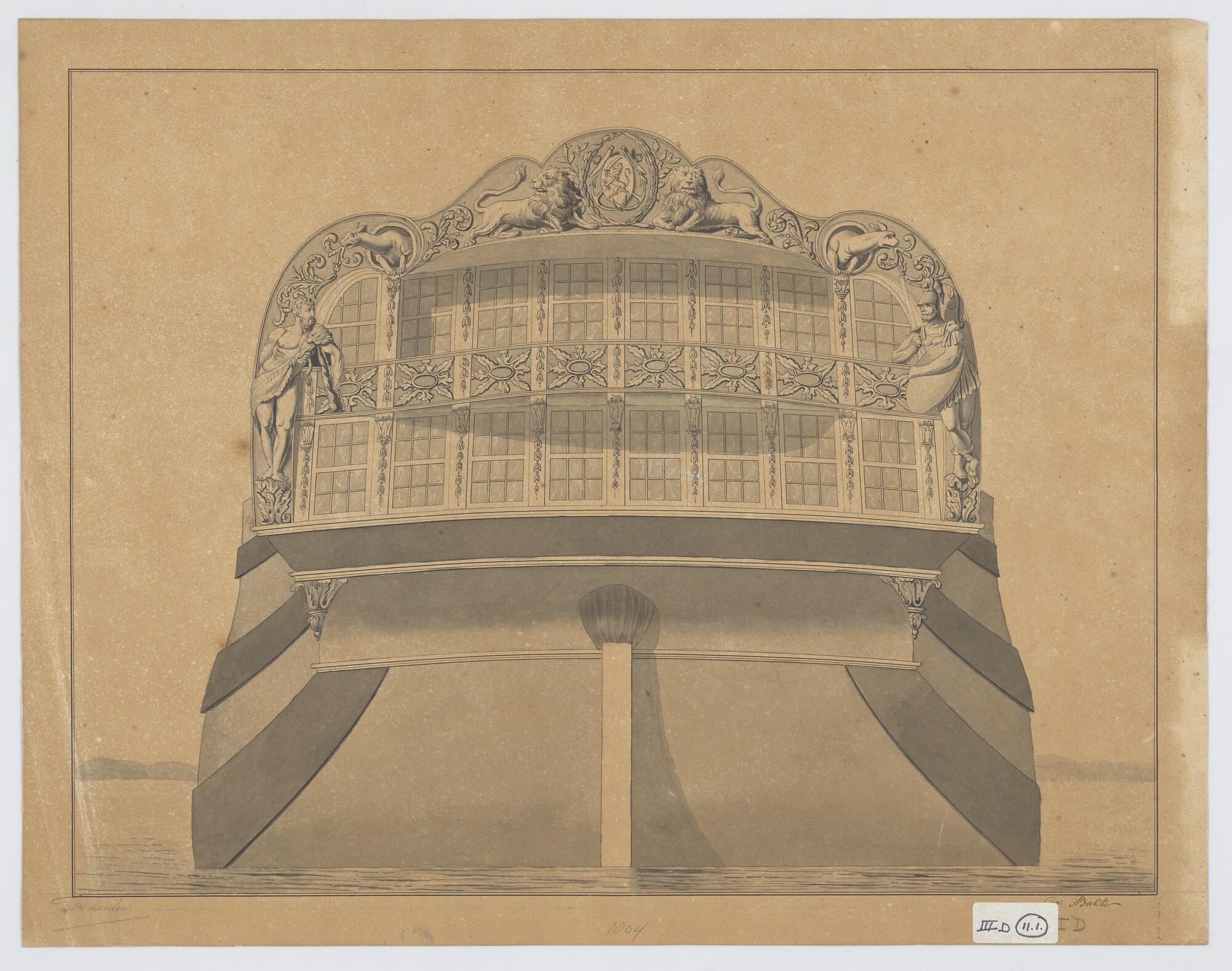 Spiegel en zijgalerij van het schip 'Neptunus' van 6...