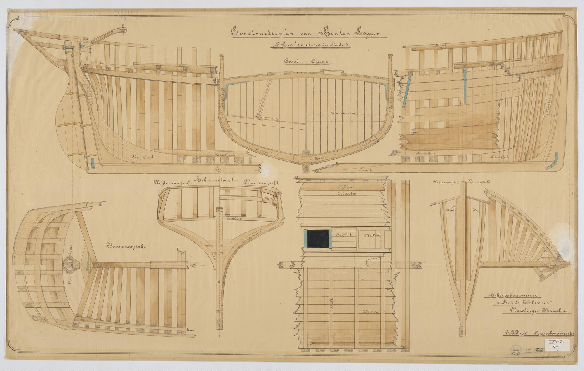 Constructieplan van een waterschip