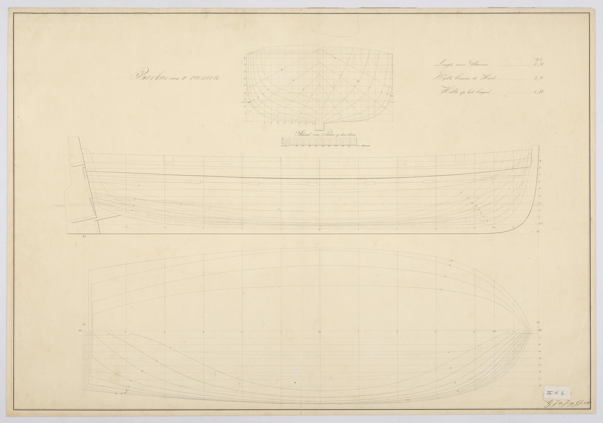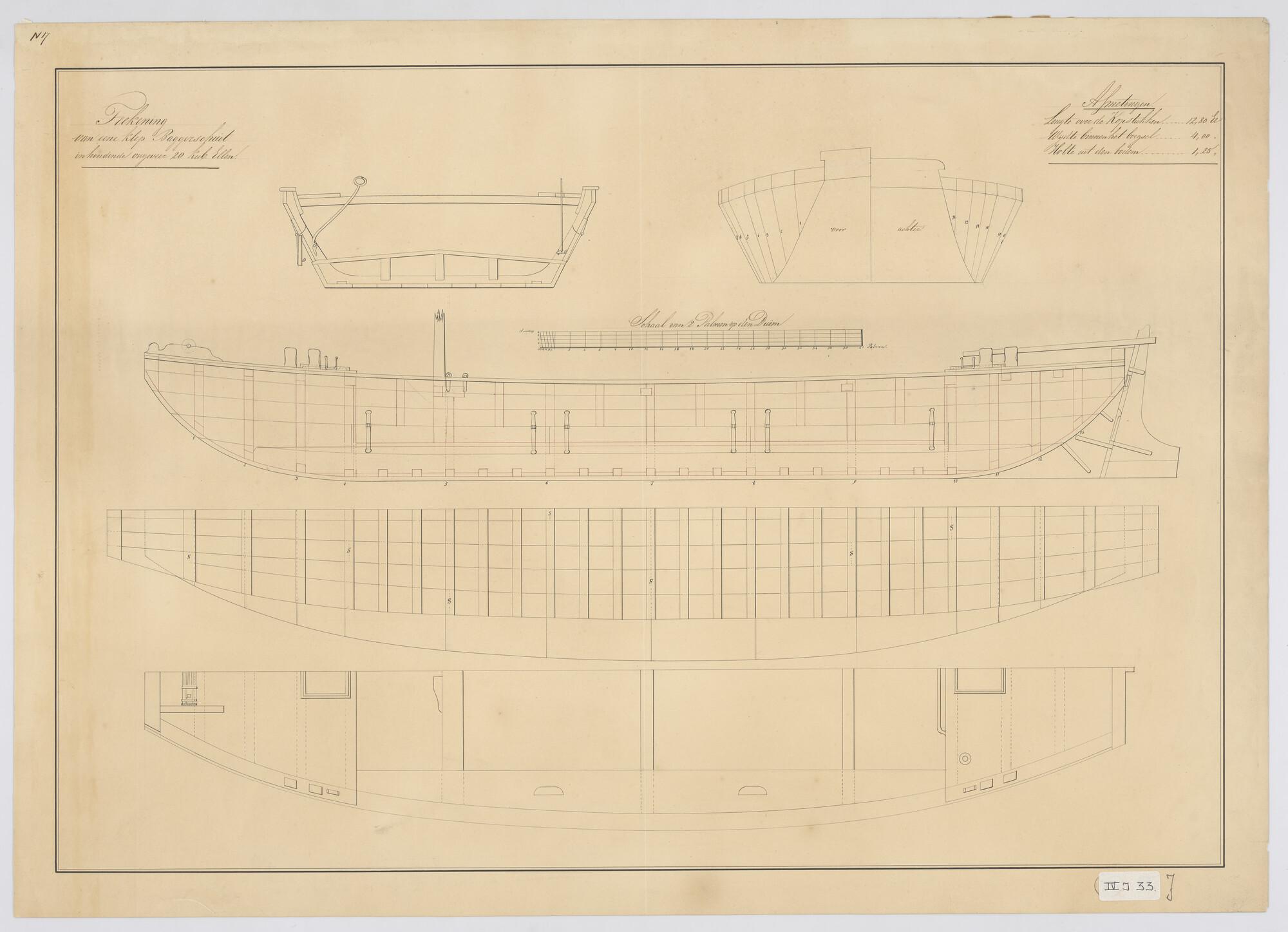 Lijnenplan van een schip van 60 stukken