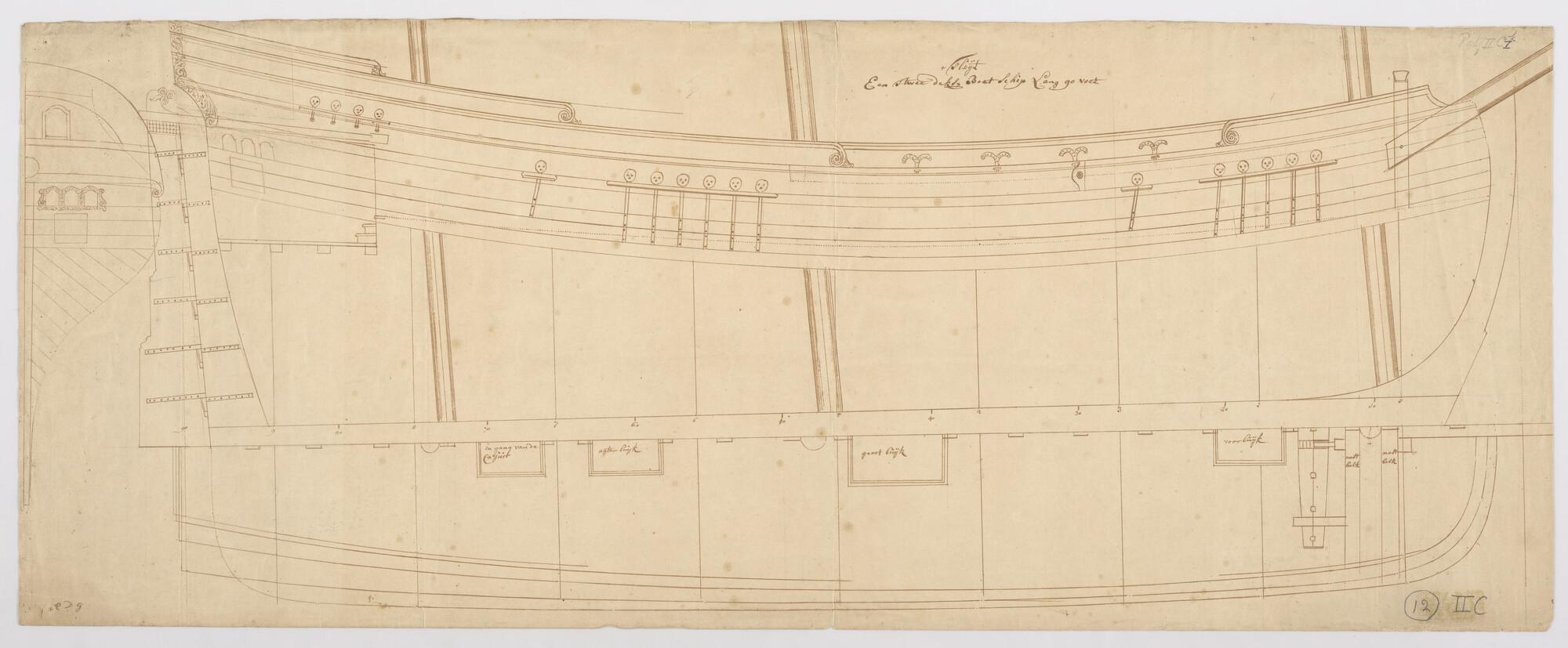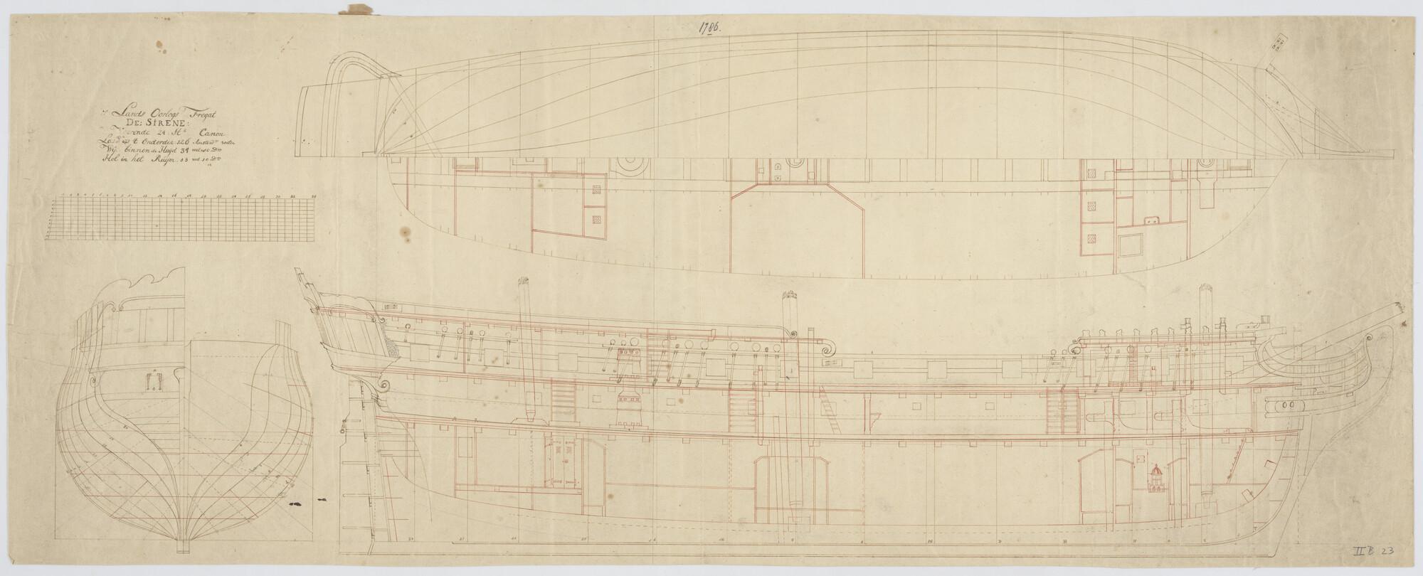 Lijnenplan van een schip van 50 stukken, 1782