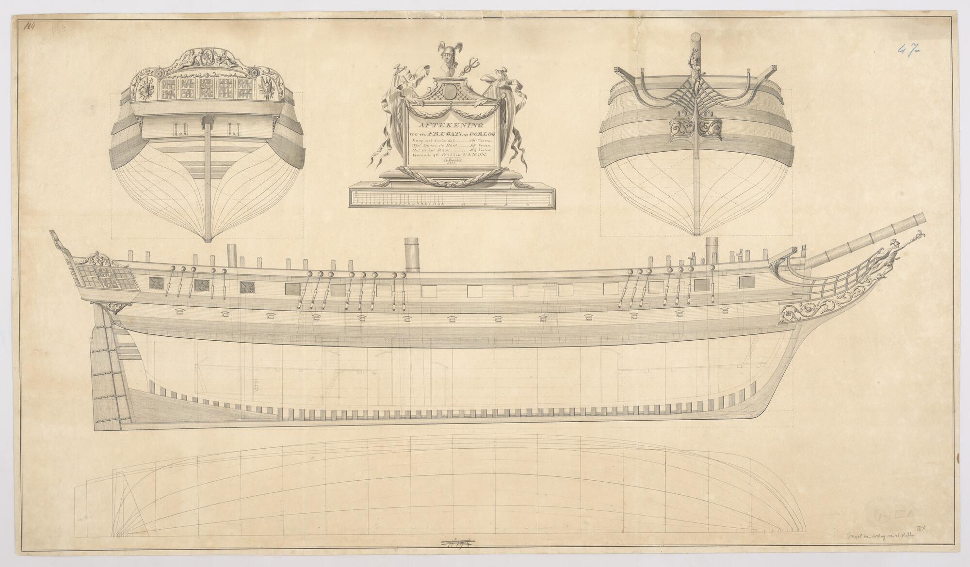 Algemeen plan van een fregat van 46 stukken