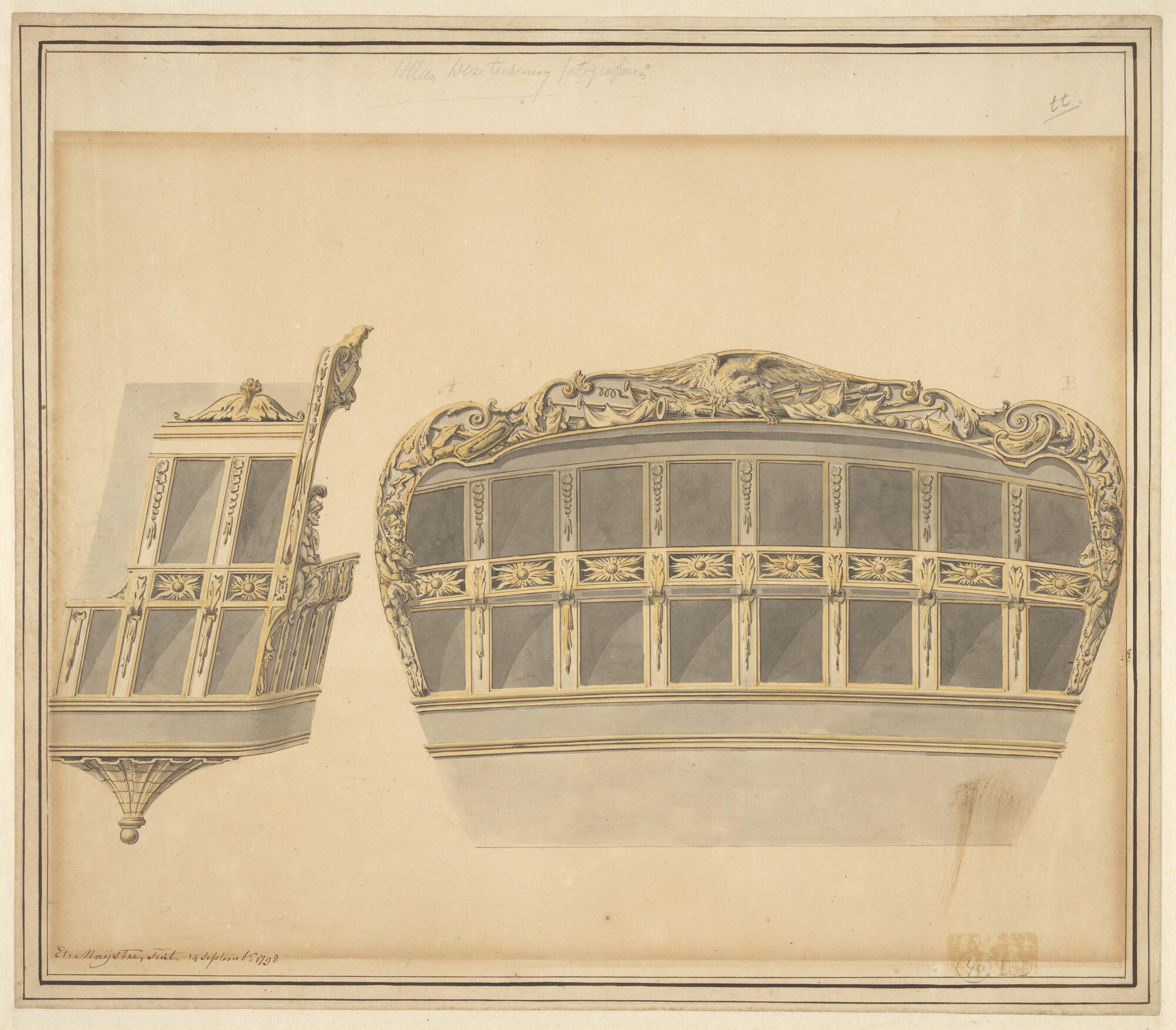 Spiegel en zijgalerij van een statenjacht
