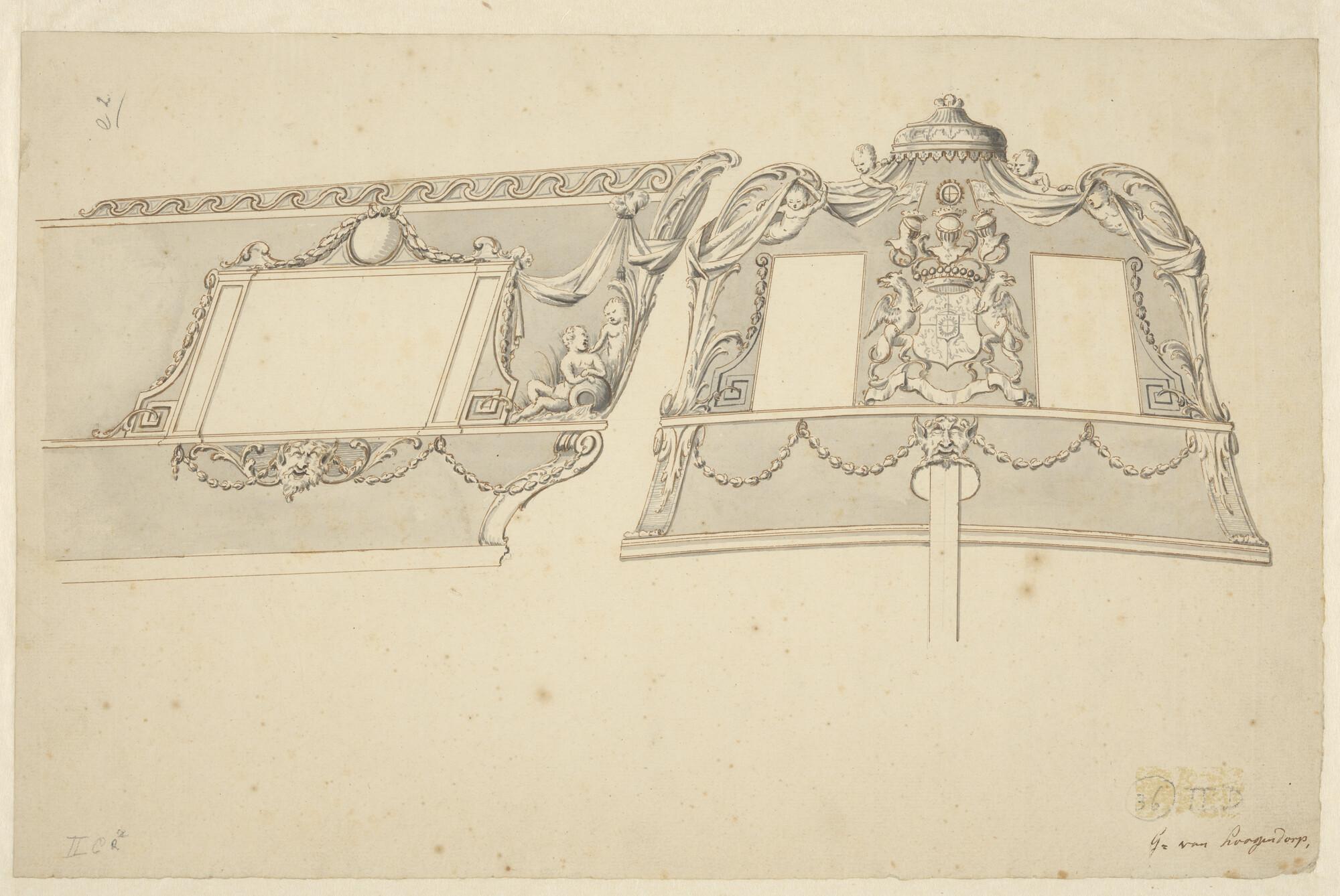 Spiegelversiering voor een statenjacht voor G. van H...