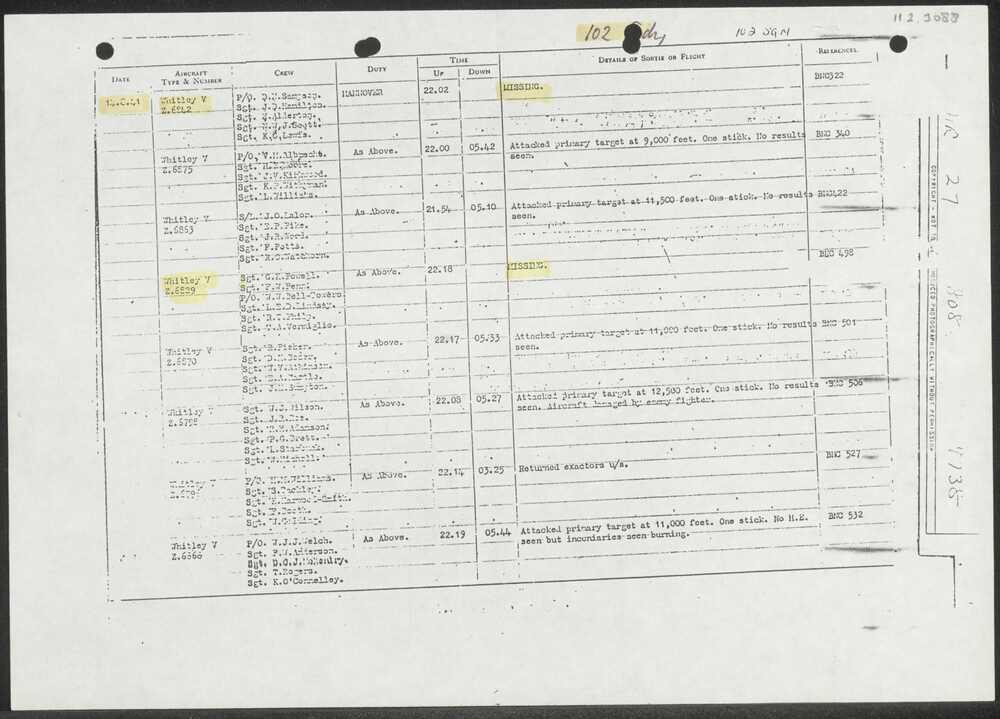 Air 27-808 No. 102 Squadron R.A.F. 14-08-1941.