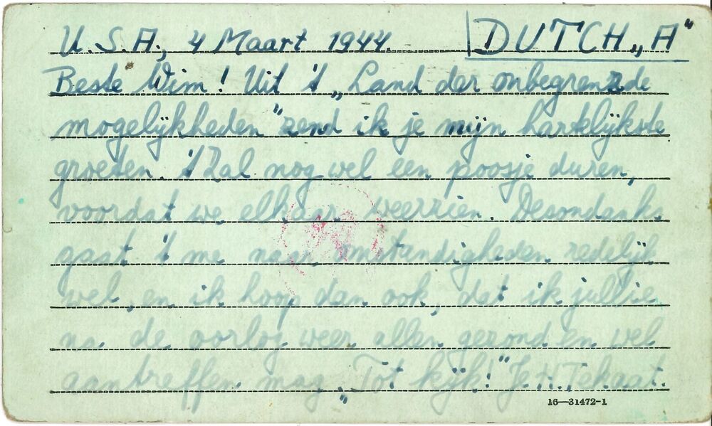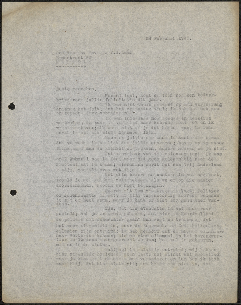 Brief aan Dhr. en Mw. v.d. Land 28 februari 1944
