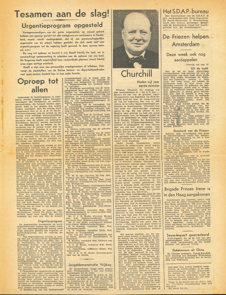 Het Vrije Volk, woensdag 9 mei 1945, eerste jaargang...