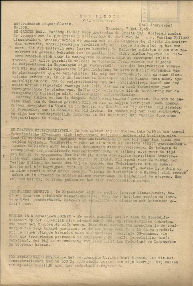 Het Parool Amsterdamsch Nieuwsbulletin No.208, maand...