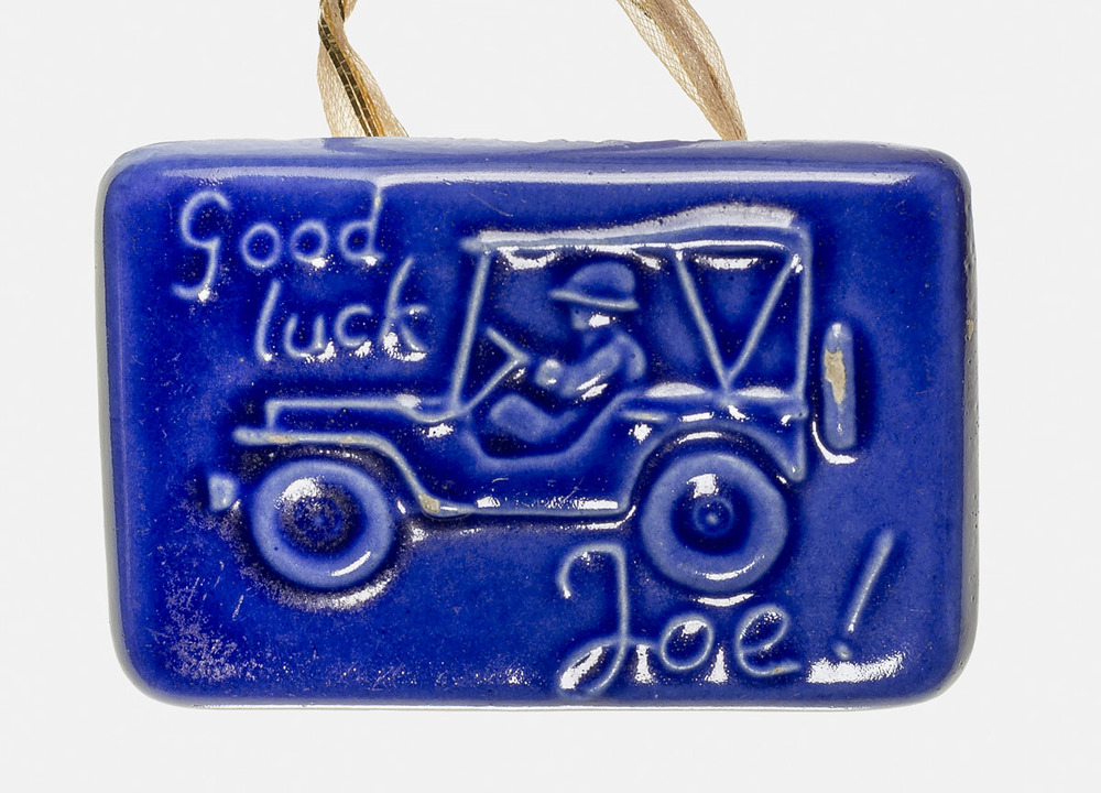 blauw geëmailleerd plaatje met daarop een afbeelding...